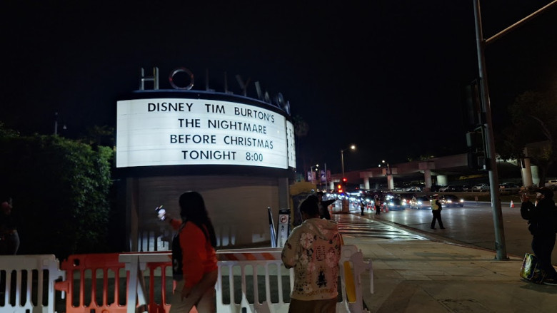 Tim Burton’s THE NIGHTMARE BEFORE CHRISTMAS is apparently huuuuuge around Hollywood this time of the year. Not only is it playing at Disney’s gorgeous EL CAPITAN Theater (above), but a live presentation at the Hollywood Bowl has become an annual event.