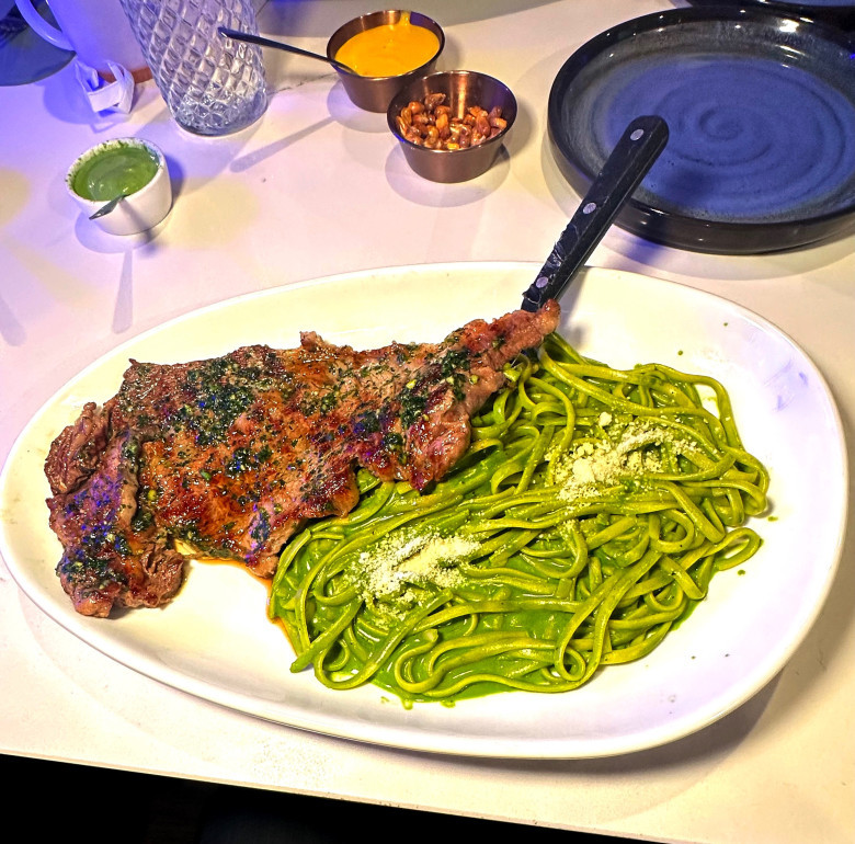 One of my favorite Peruvian dishes is New York steak served with pesto pasta which pairs well. It’s simple, but effective—and gets the job done. I’ve enjoyed it at Lima Limon and its spin-off Moia, both owned by the same family in Vegas. Here’s a photo of “Churrasco Con Tallarin Verde,” as it’s known, that I snapped recently at Lima Limon on Decatur just off the 95. It's off the beaten path, where life is always more interesting.